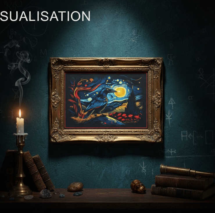 Celestial Crow Canvas Print – Van Gogh Inspired Starry Night Crow – Gothic Wall
