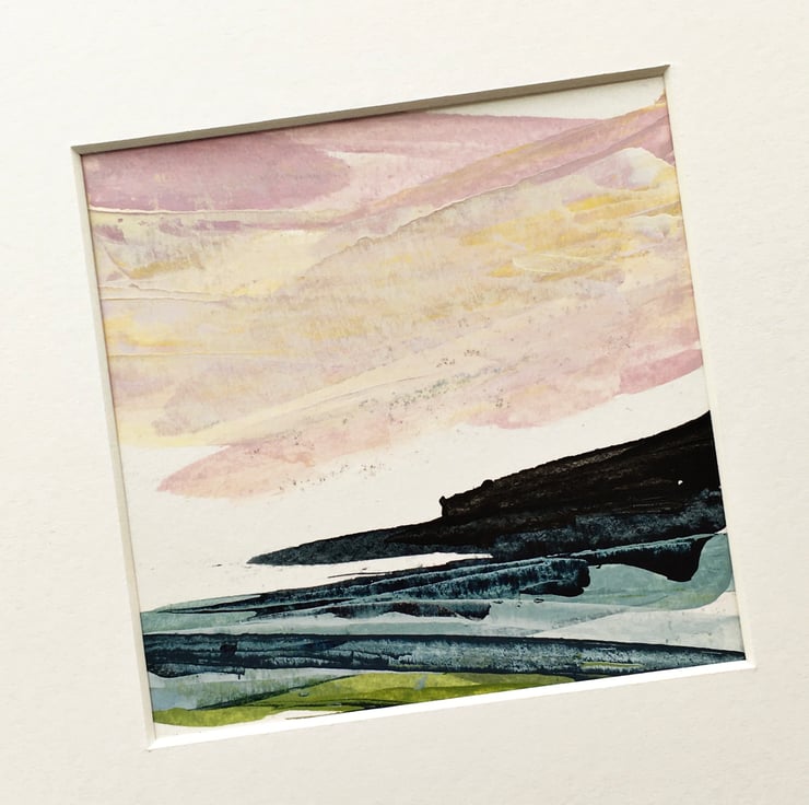 The painting size showing with mount is 5” x 5” (the actual painting size is slightly larger than this underneath mount).