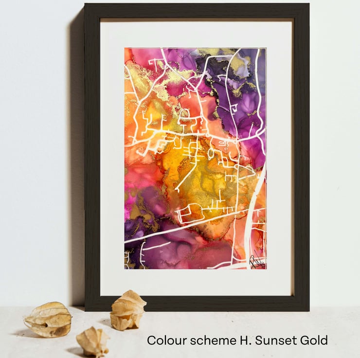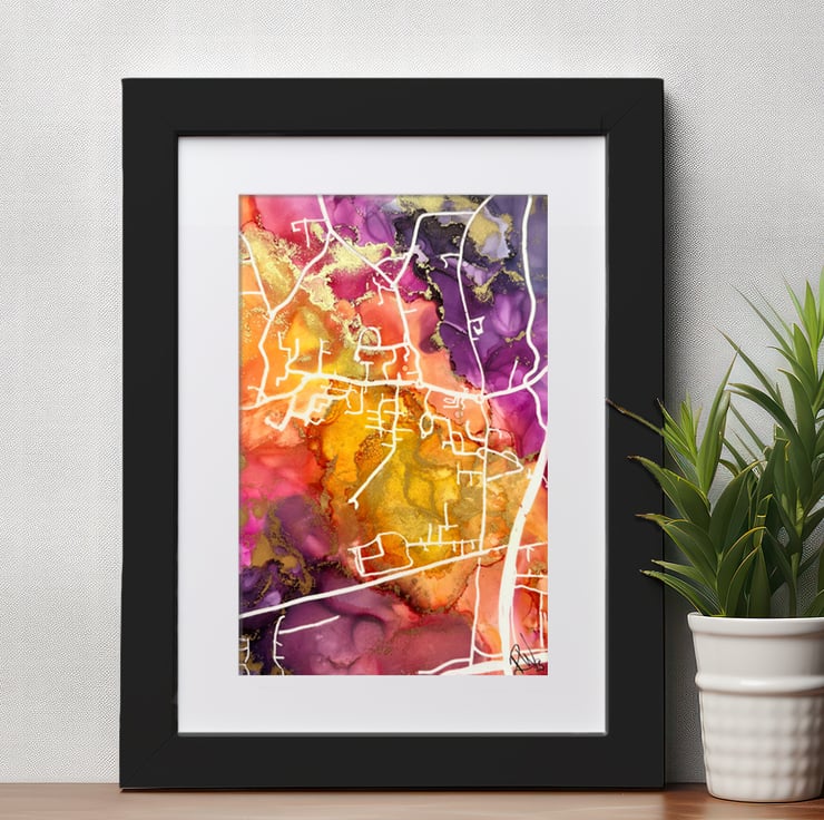 Possibly my favourite colour scheme of all my alcohol ink paintings. This colourful 6x4 painting (comes in an 8x4 mount) will be custom made using your chosen address.