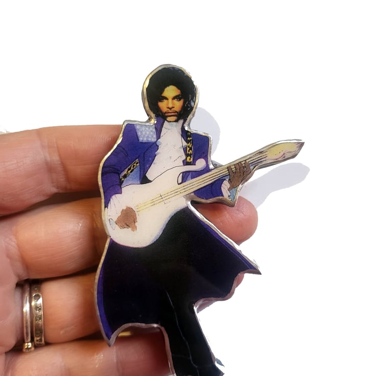 This Marvellous Prince brooch measures approx 9cm x 5cm and is approx 4-5mm thick.
