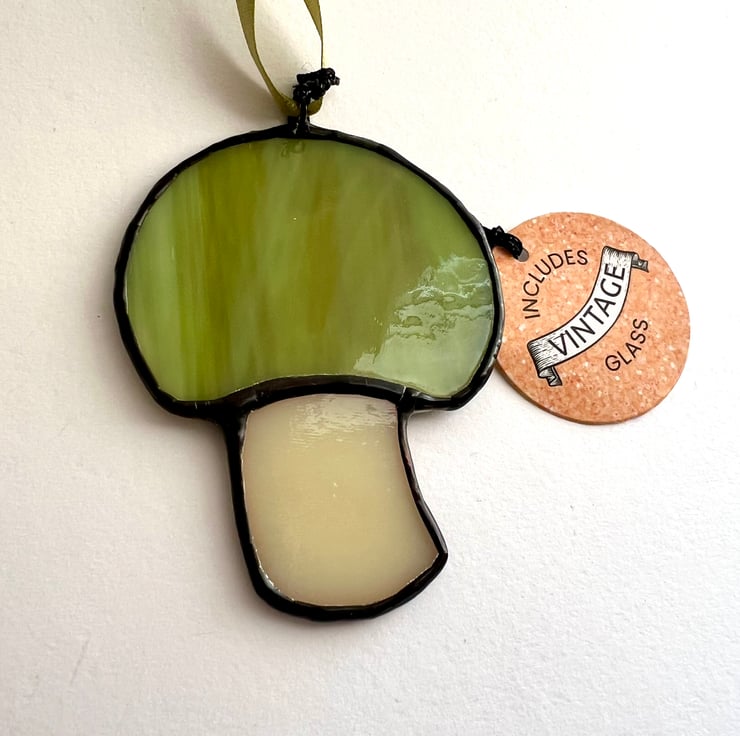 Please note: Solder contains lead so please wash hands after handling to be as safe as possible. Each mushroom is made from a vintage glass sample - no two will be the same!