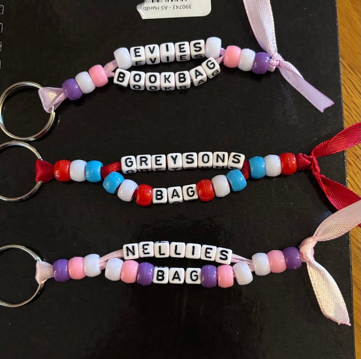 personalised key rings (ex. book bag, lunchbox, backpack, bag, anything you like)