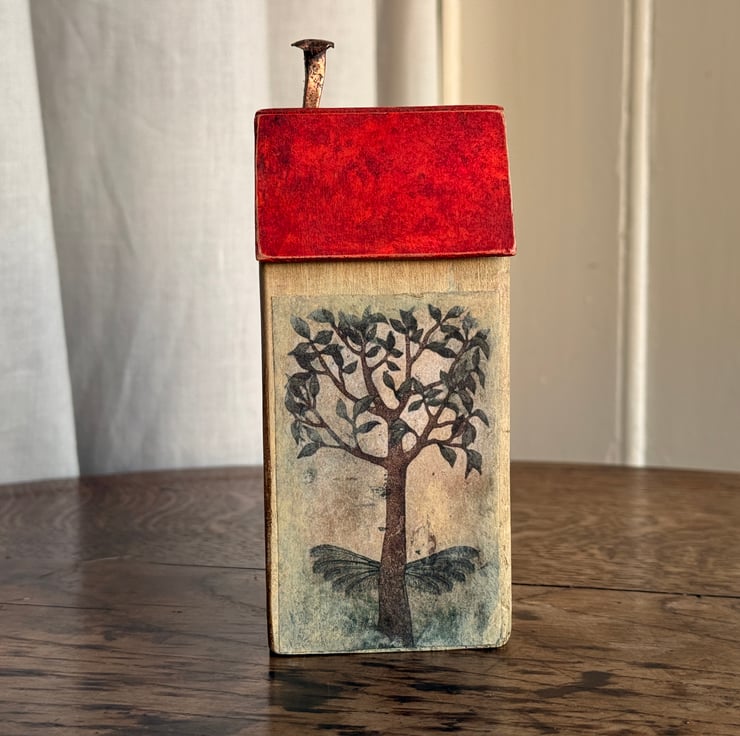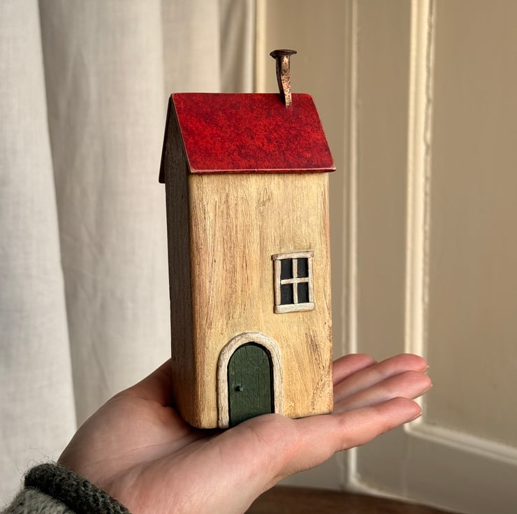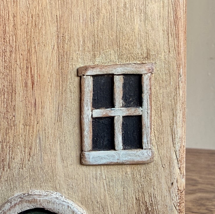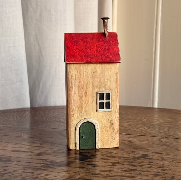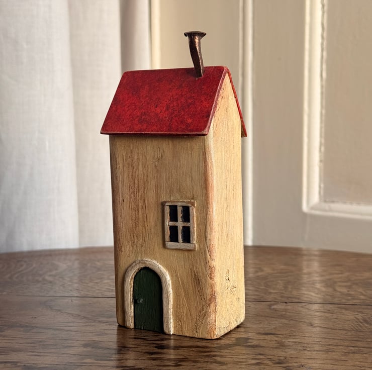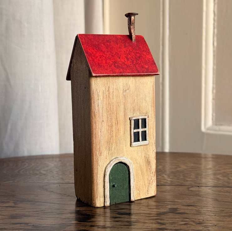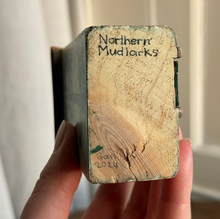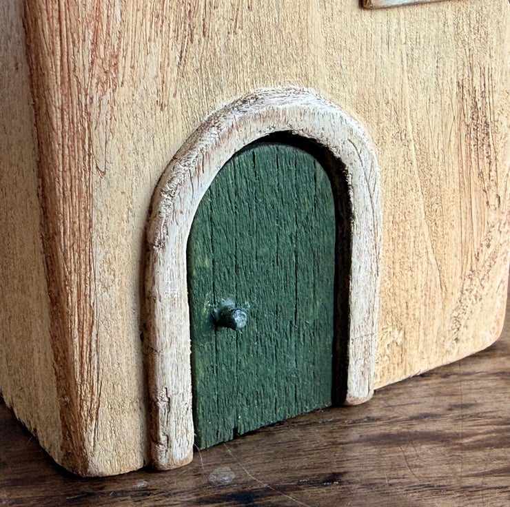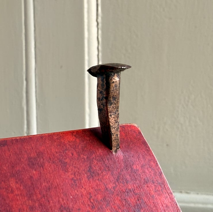 This little wooden house made by Gail, is constructed from wood left over from our property renovations and a copper nail from one of our mudlarking expeditions.