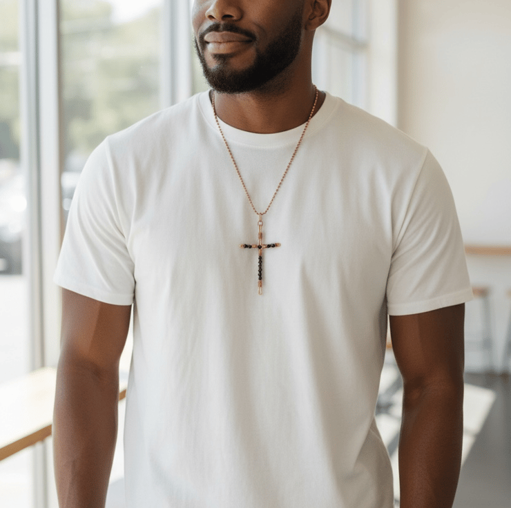 Oxidised Copper Black Crystals Cross - Goth, Alchemy