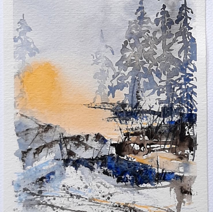Painted on watercolour paper and mounted onto quality, white card stock, which has a slight texture. The painting is protected by two coats of satin varnish.