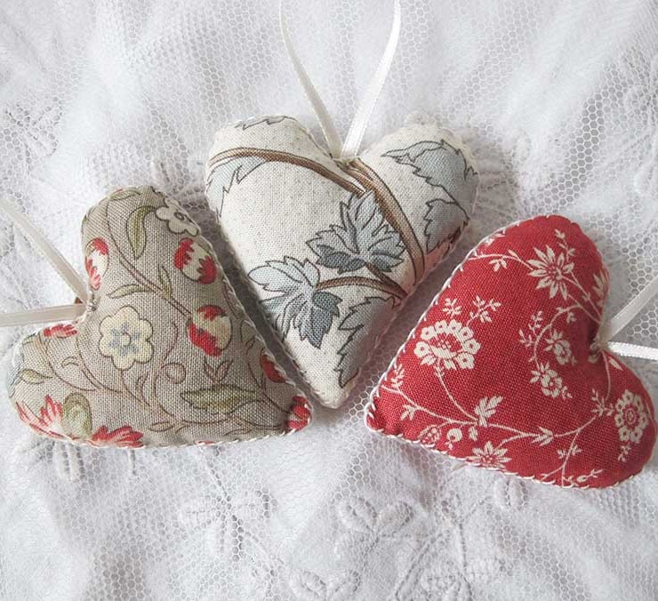 I have a long standing love of lavender and harvest it each year from my garden. Together with my ever growing collection of beautiful fabrics these little hearts help me use up my left over fabric pieces while adding some wonderful fragrance to the home. The scent lasts a long time but to freshen it you can gently squeeze the lavender bag to crush some of the flower heads and release more scent.