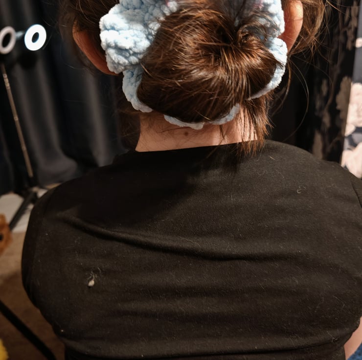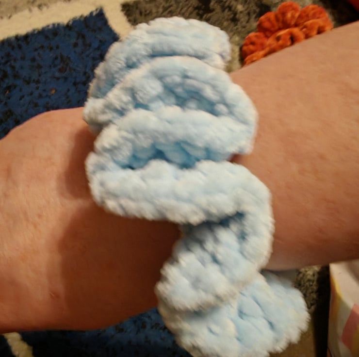 Soft chenille yarn scrunchie a great accessory to your hair style