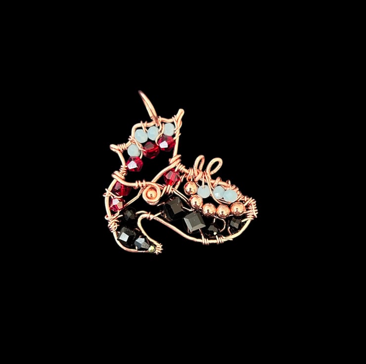 This Copper Boot Pendant is a handcrafted piece that would make a unique addition to any jewellery collection. The pendant has solid copper beads and faceted crystal beads with a polished finish. The boot shape and wire wrapping setting style gives it a vintage look, perfect for those who appreciate jewellery.