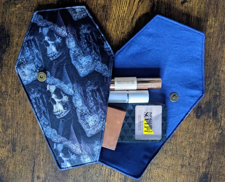 Gothic Skull Coffin Makeup Bag – Dark Occult Cosmetics Pouch – Handmade Magnetic