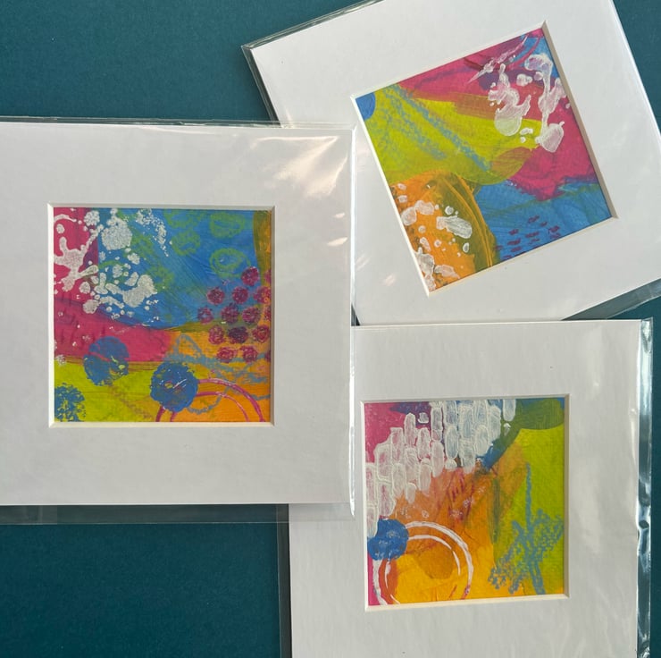Each piece is created intuitively using layered mark-making and vibrant colour, allowing energy and warmth to emerge naturally. No two artworks are the same, but all share a sense of optimism and gentle celebration.