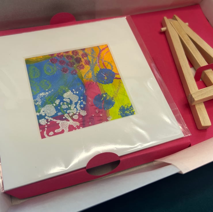 This mini art gift box contains an original mixed media abstract artwork, painted intuitively with a love of colour and texture. Each piece is completely one of a kind.