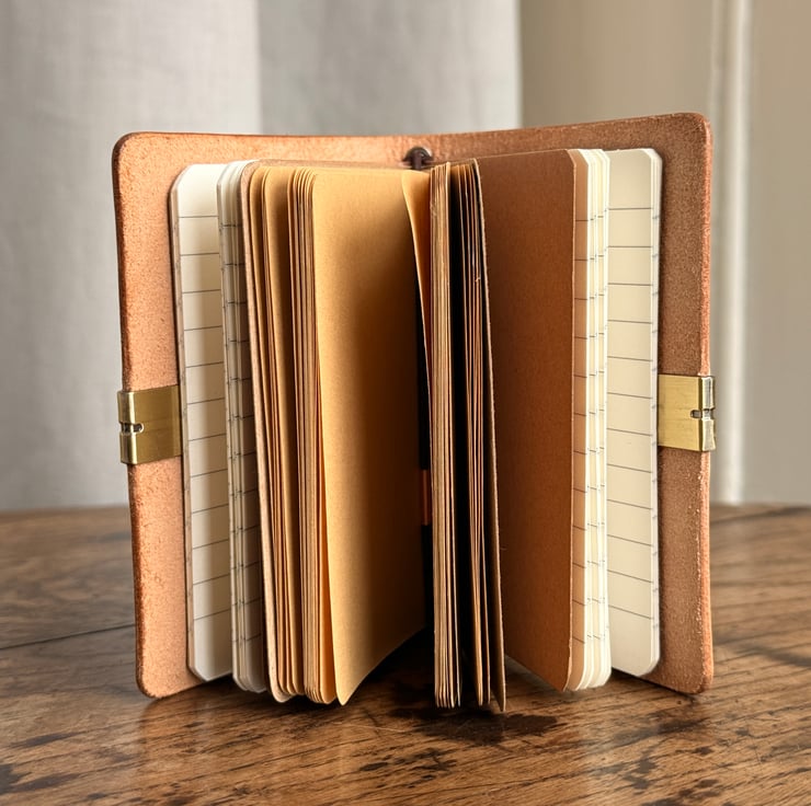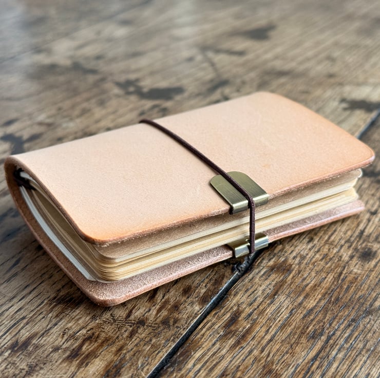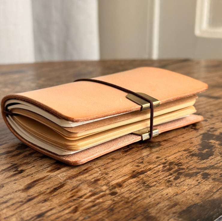 This leather notebook was handmade by Gail. It contains 3 A6 interchangeable notebooks - 12 ruled and one plain. Use it to keep track of your mudlarking adventures, or simply as handy little notebook to accompany you in your daily activities. It's so cute!