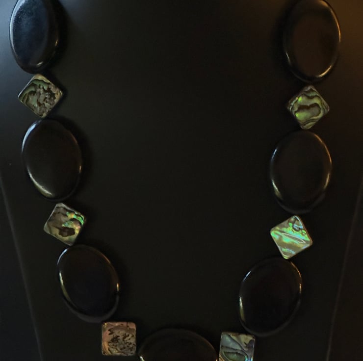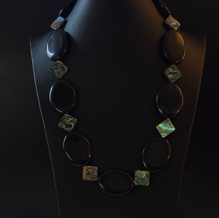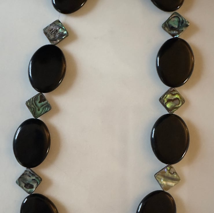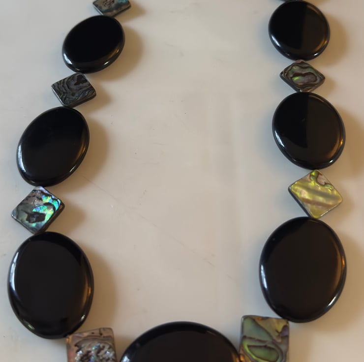 I’ve recycled the beads from two old necklaces. The mixed green ones I think may be polished shell and they look lovely in the light.