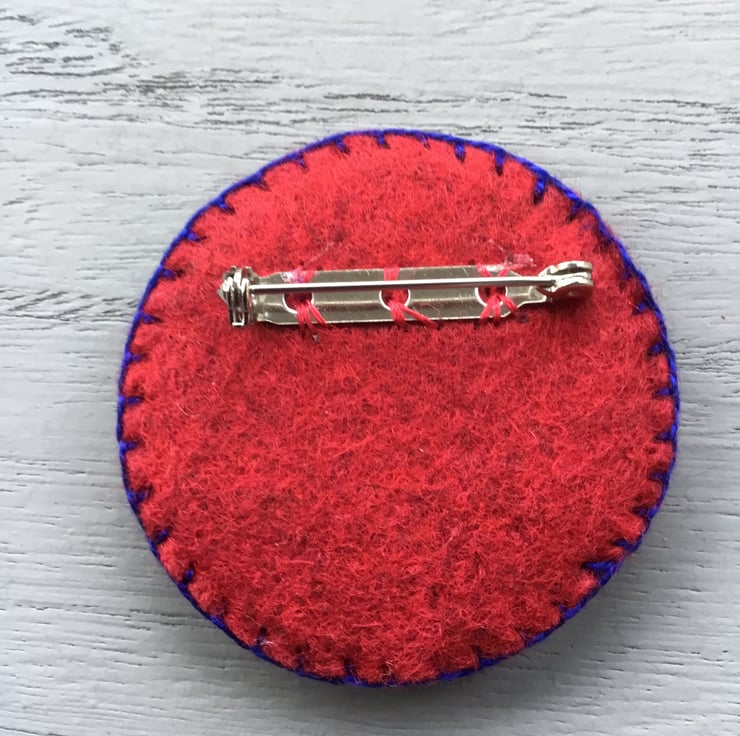 This brooch is 2 inches (5 cms) …. a nice wearable size. A metal brooch pin with a safety catch for secure wear is sewn on the back.