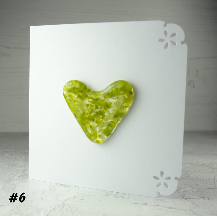 Design: Each card showcases a 4cm wide fused glass heart.