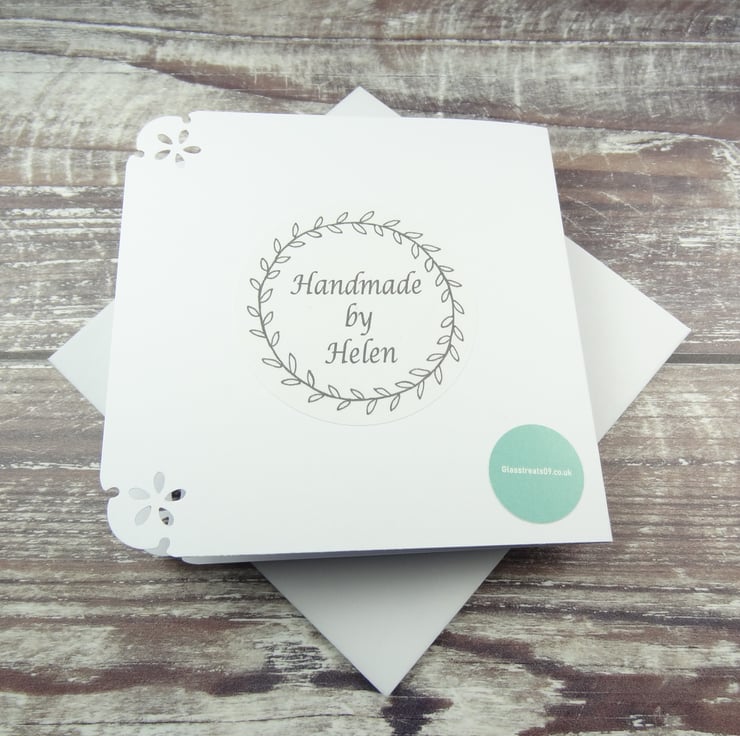 Quality: Made from 300gsm quality white card, measuring 10cm, and paired with an envelope.