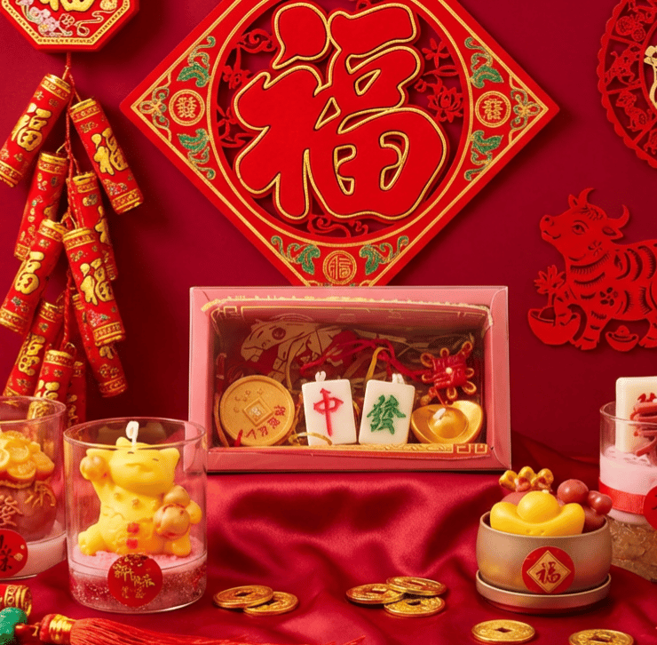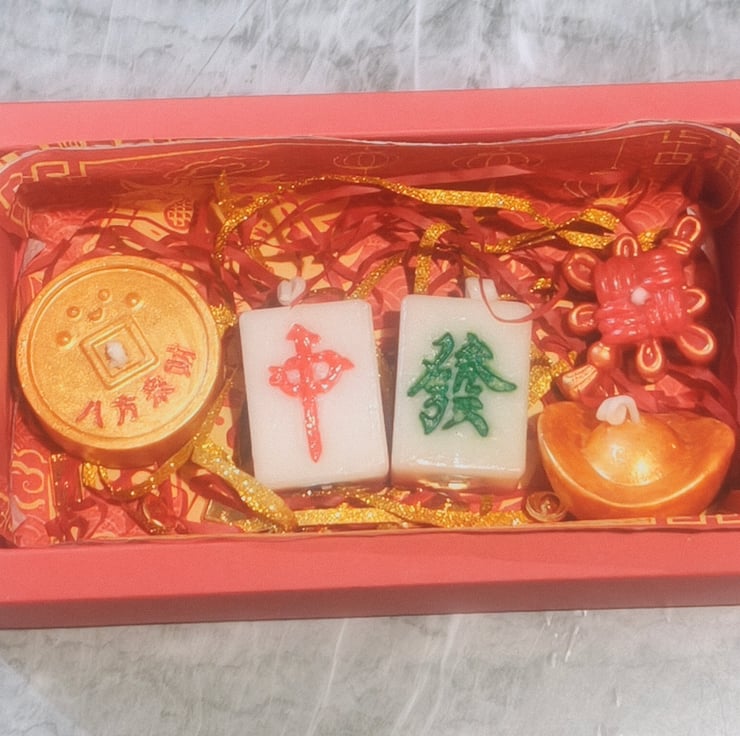 Beautiful and unique Lunar New Year Prosperity" candle gift set.