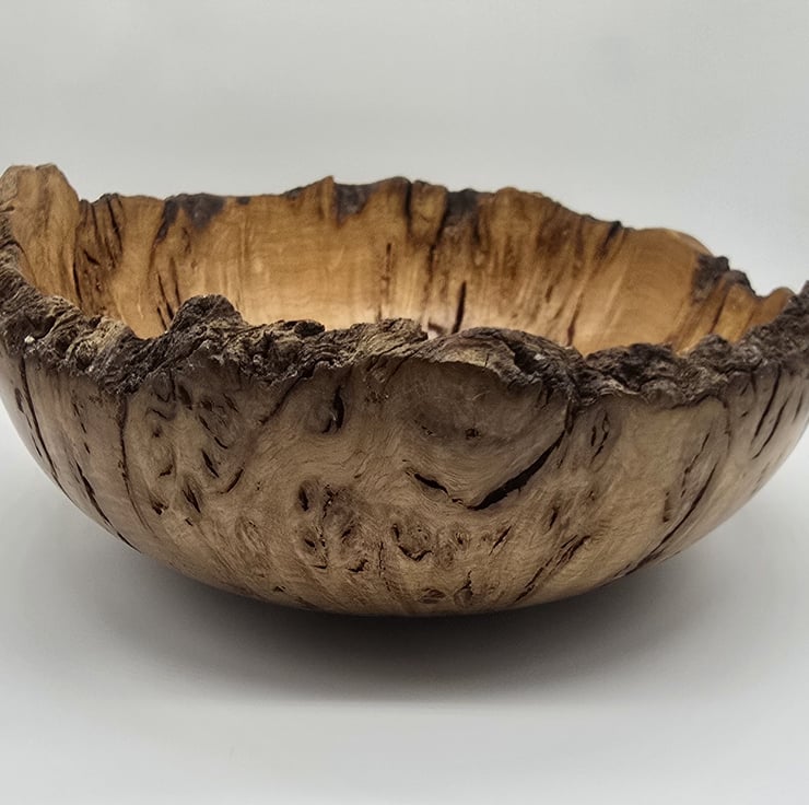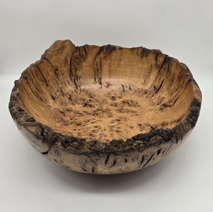 To preserve the incredible detail and texture, the bowl has been finished with high-quality Microcrystalline wax. This provides a durable, moisture-resistant finish that enhances the wood's deep character while remaining suitable for use as a luxury fruit bowl or a standalone centrepiece.