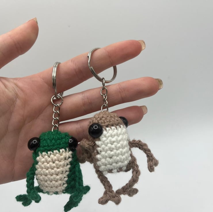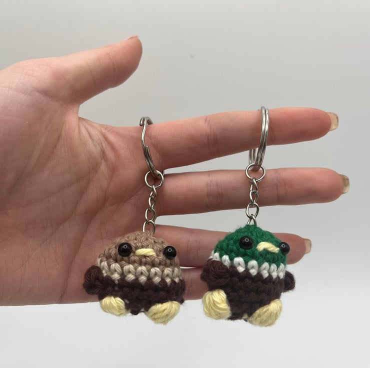 Handmade crocheted frog and toad, mallard and duck matching friendship key-rings. Perfect for birthday gifts for a friend, girlfriend, boyfriend, or loved one. Adorable and matching and can attach to bags, pencil cases or makeup bags.