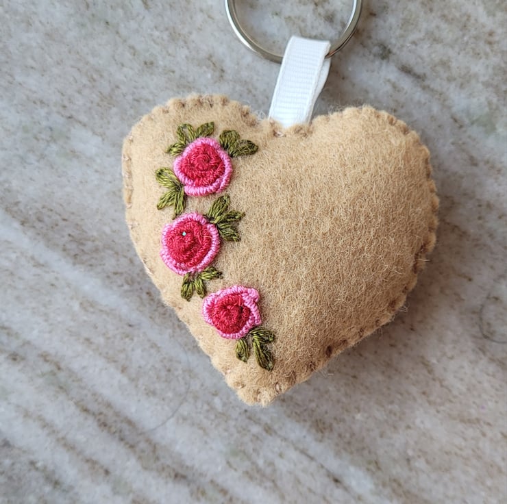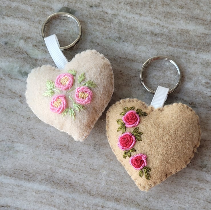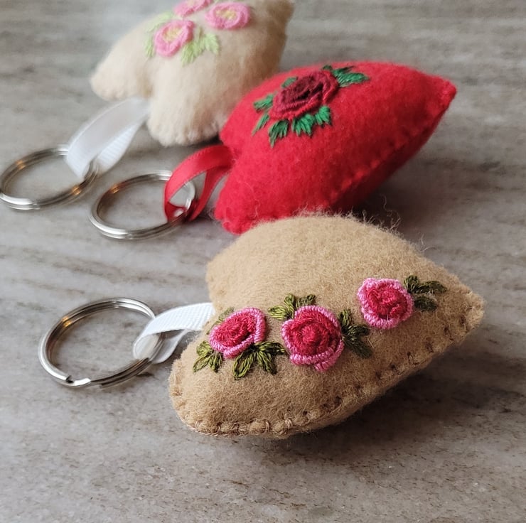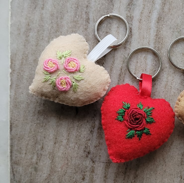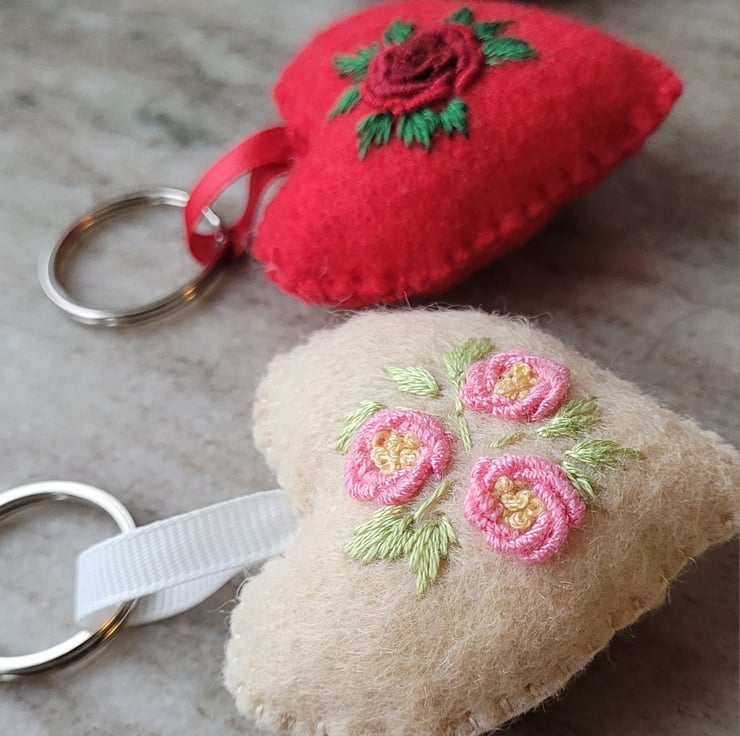 this cute little house keyring is hand stitched using DMC embroidery floss, on a felt with added details of pure cotton fabric.