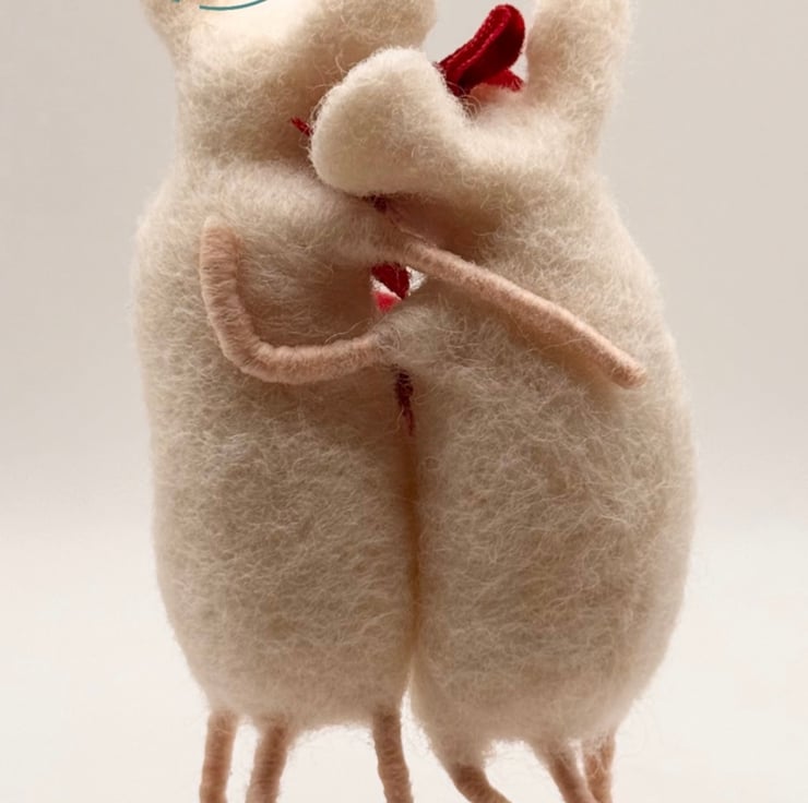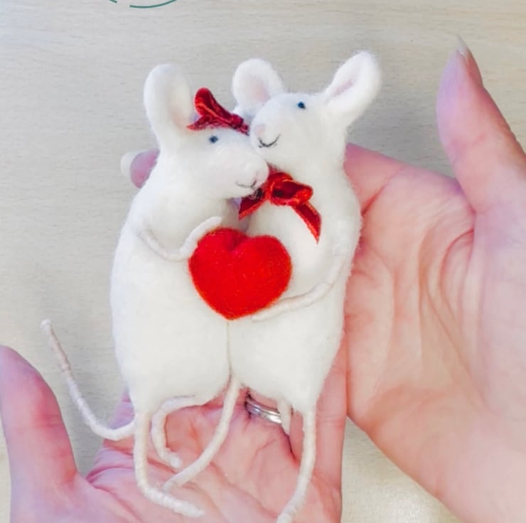 Needle-felted cuddling mice with heart - Valentine’s Day Gift - British wildlife