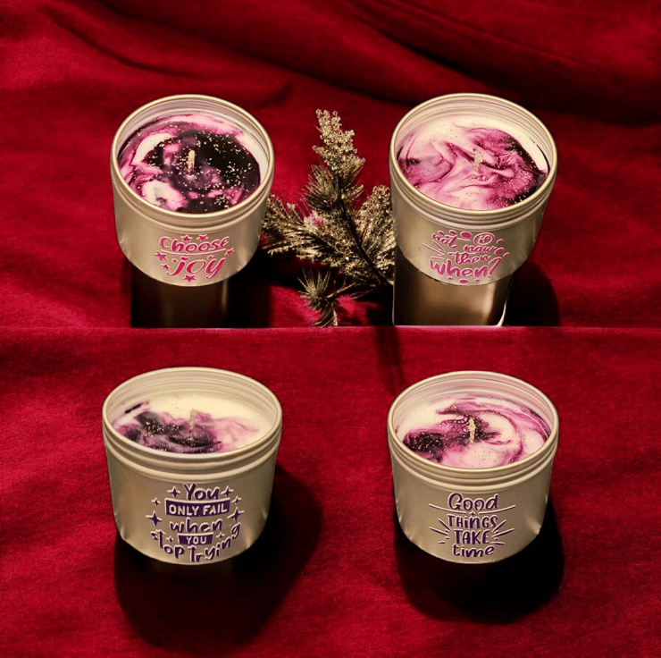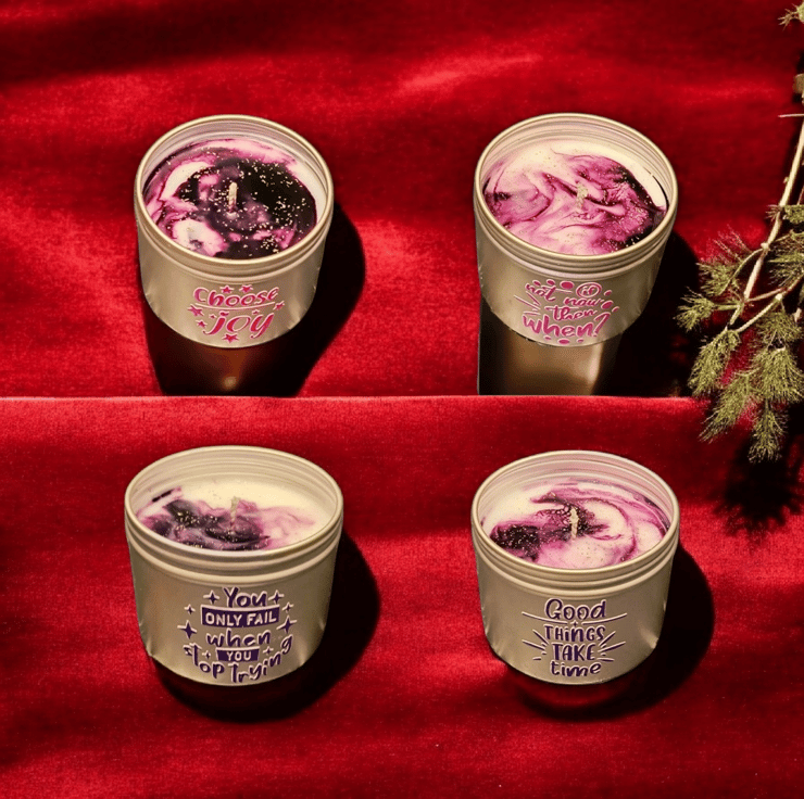Luxurious Soy Marble Candle, hand-poured, into a, durable container. Featuring unique, swirling patterns, these scented candles offer a, long-lasting, clean burn for, a, tranquil atmosphere