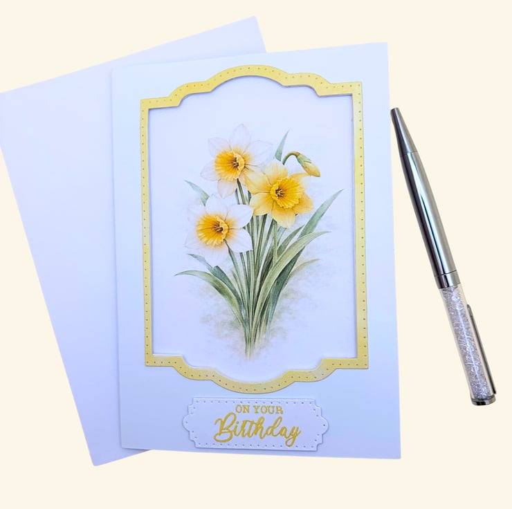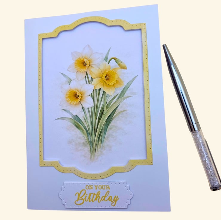 Celebrate a special birthday with this delicate Daffodil botanical card, inspired by March's birth flower.