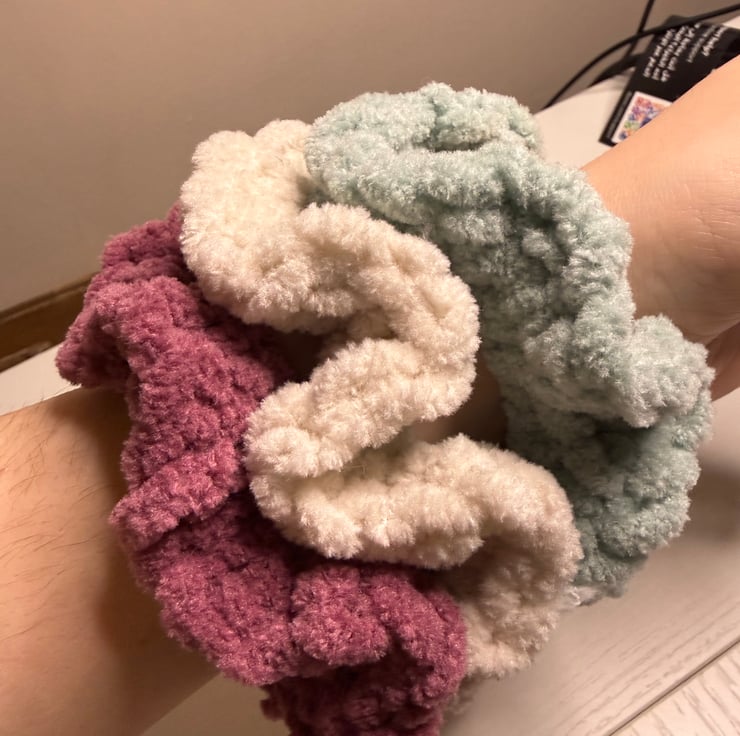 These scrunchies were inspired by cozy, girly moments — soft textures, pastel tones, comfy outfits, and little everyday luxuries. I wanted to create something that feels comforting, cute, and special, like a small self-care treat you can wear