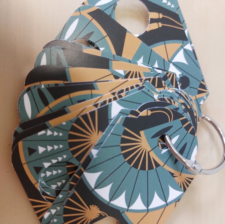 Set of 16 embroidery floss drop organisers. Hand punced from strong 350 gsm card. Secured with a metal ring. Ideal for keeping your current project threads together without becoming tangled.