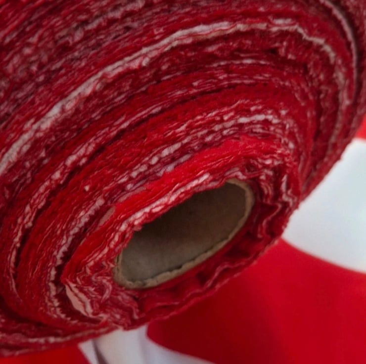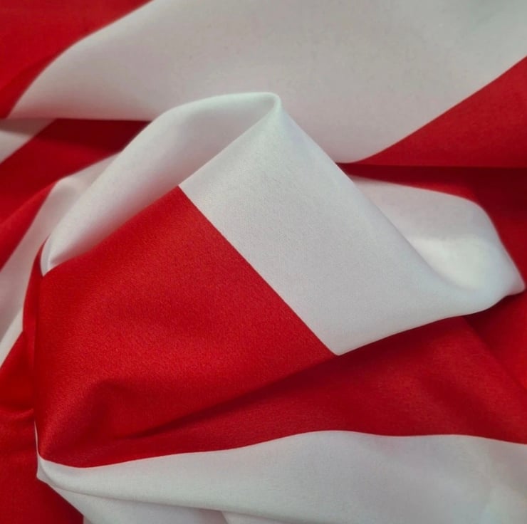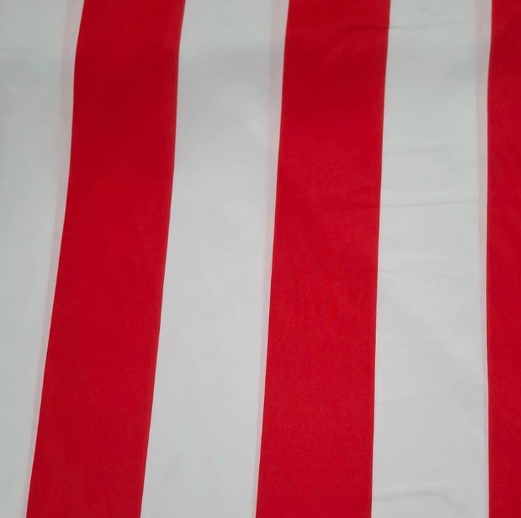 This wide red and white striped fabric is a lightweight nylon polyester blend with a crisp feel and surprising strength. At 1.5 metres wide, it is ideal for tablecloths, market and shop displays, crafts, decorative drapes, and is also great for lining bags and other handmade items where a strong but lightweight fabric is needed.