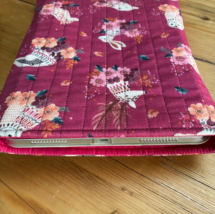 The quilted and padded slip in sleeve is designed to fit an I-Pad A16 whilst in a protective hard case. A fabric sleeve is a great way to protect and personalise your I-Pad and makes a lovely gift.