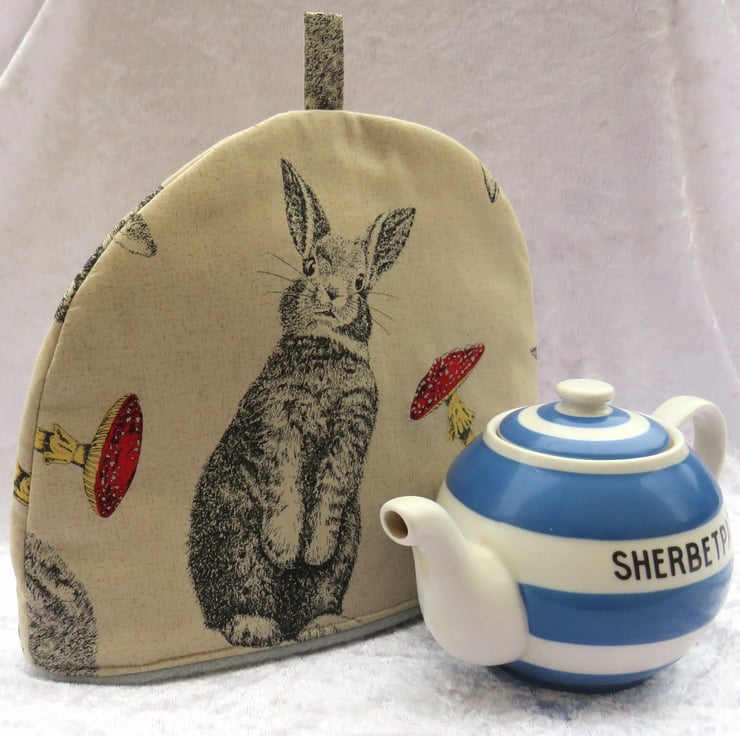 A small sized tea cosy, made to fit a 2 cup teapot.