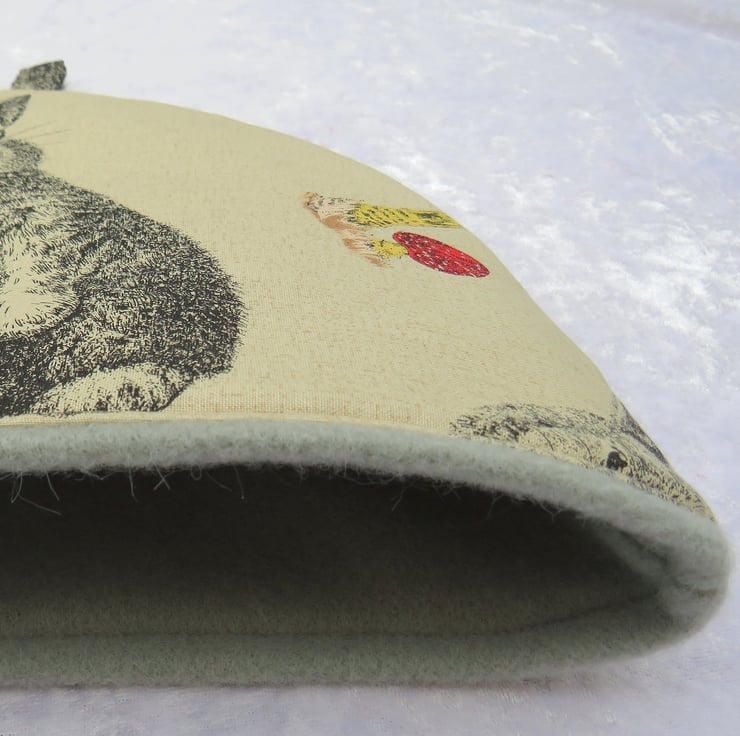 The fabric used is a quilting weight Nutex cotton, with a rabbit design.