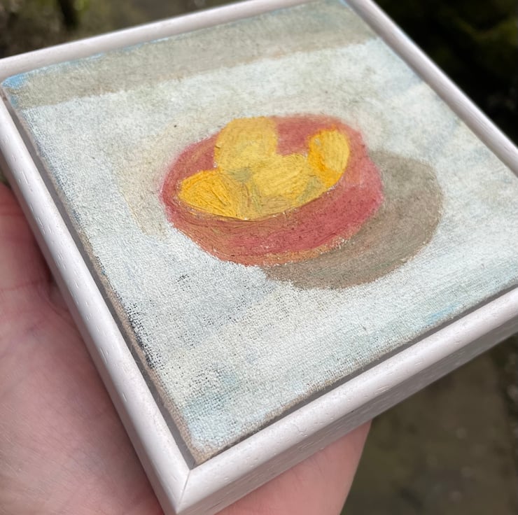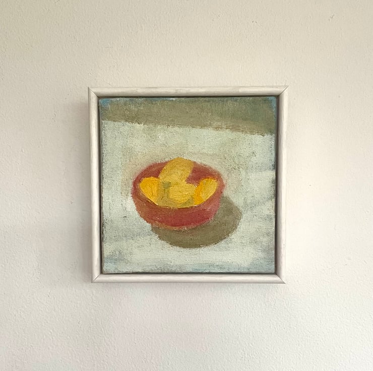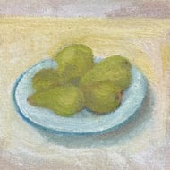 I wanted to paint a series of very small still life oils of fruit. Inspirations are many, Matisse and Vanessa Bell are my faves.