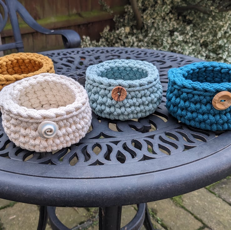 Welcome to Janiemade and my little corner of Folksy where you can buy my crocheted creations. If you're looking for skilfully handmade gifts and home decor I hope you'll find something you love. I enjoy crocheting with natural fibres, mainly cotton, and many of my home decor items use recycled braided cotton cord or recycled cotton T shirt yarn. All items are ready to post and I only charge postage on your first item. Your order will be sent by the Royal Mail Tracked 48 service.