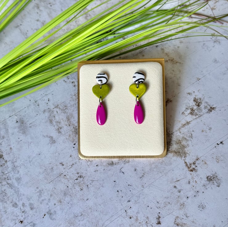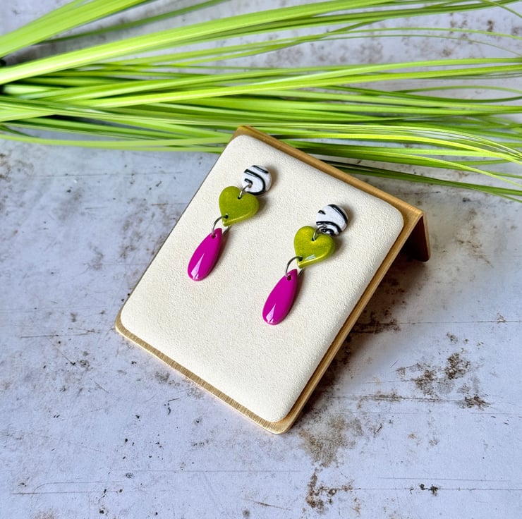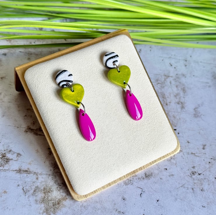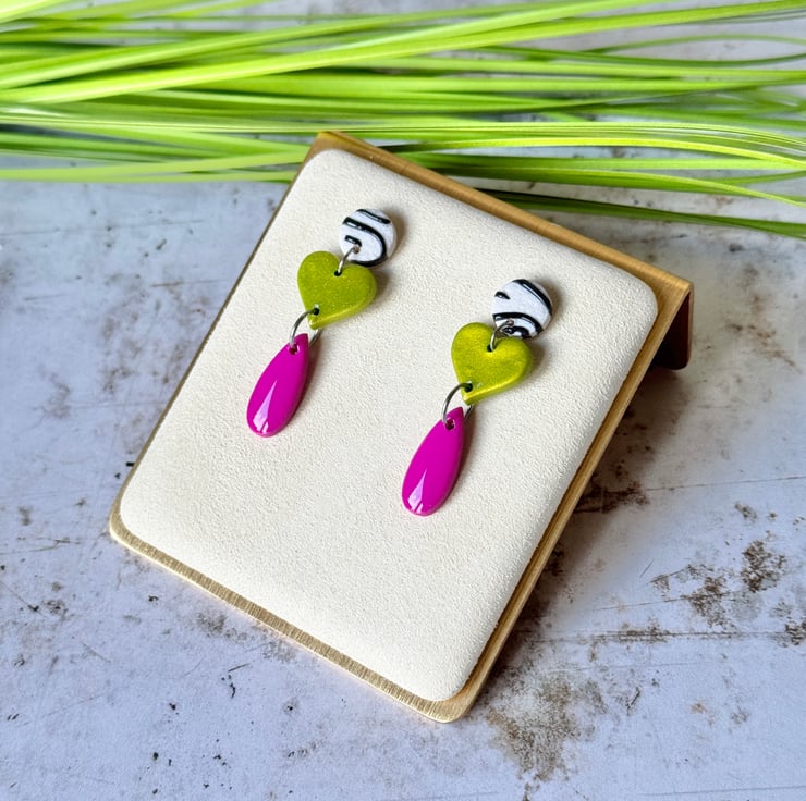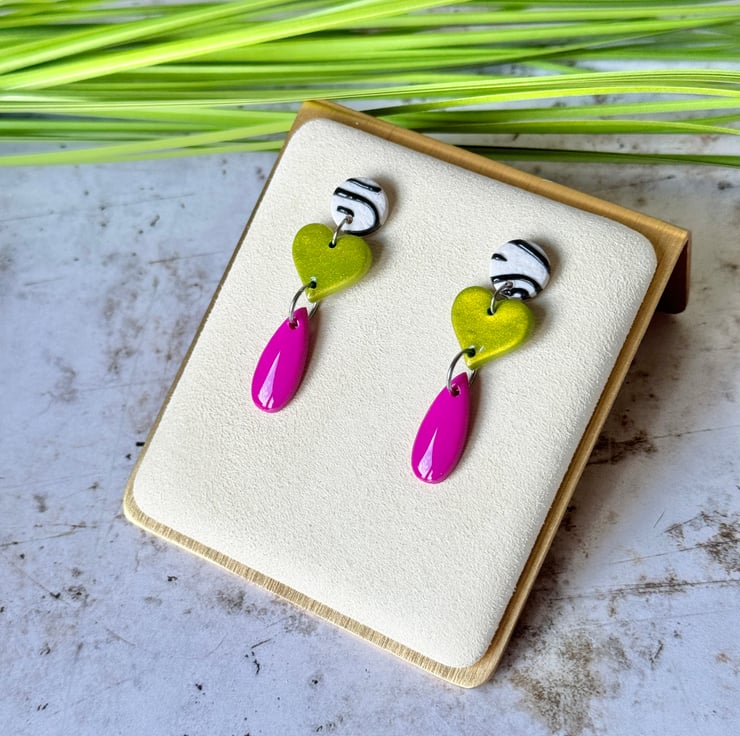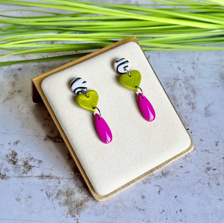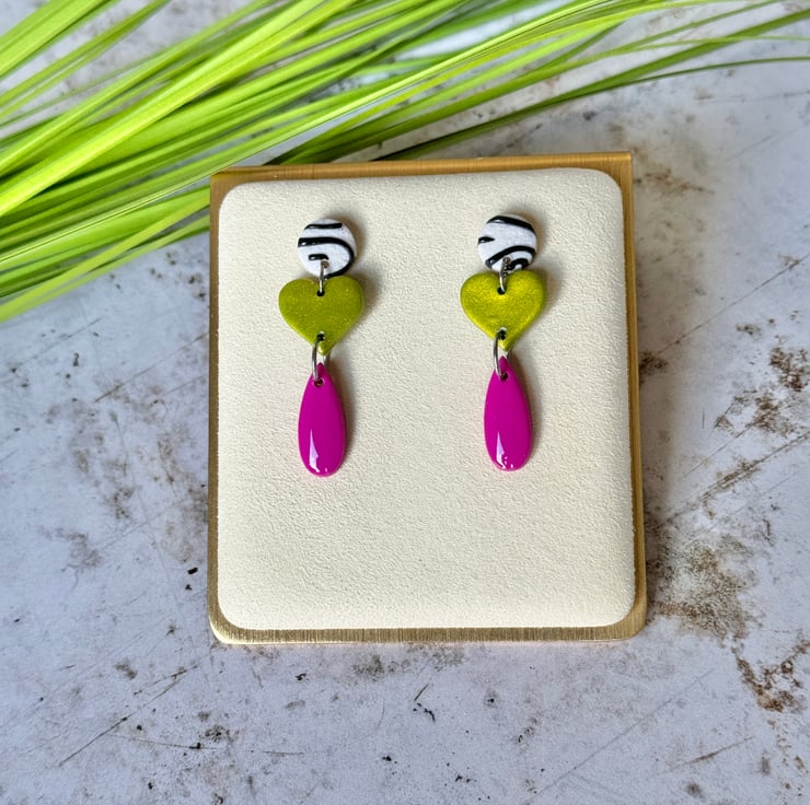 These earrings bring a bright contrasting funky three drop design.