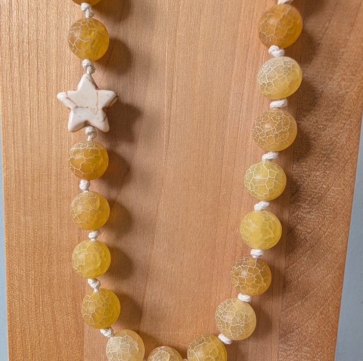Yellow frosted agate bead and howlite star knotted cord necklace