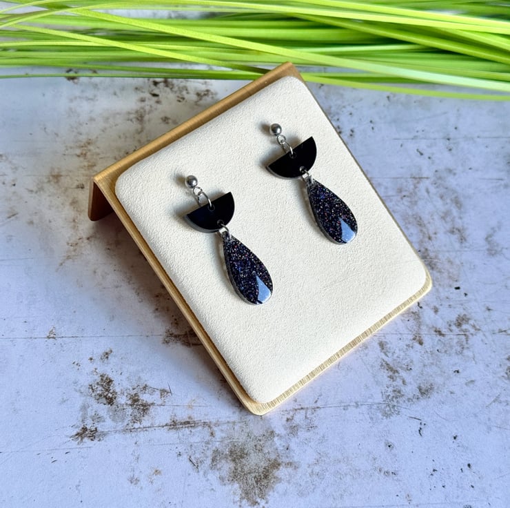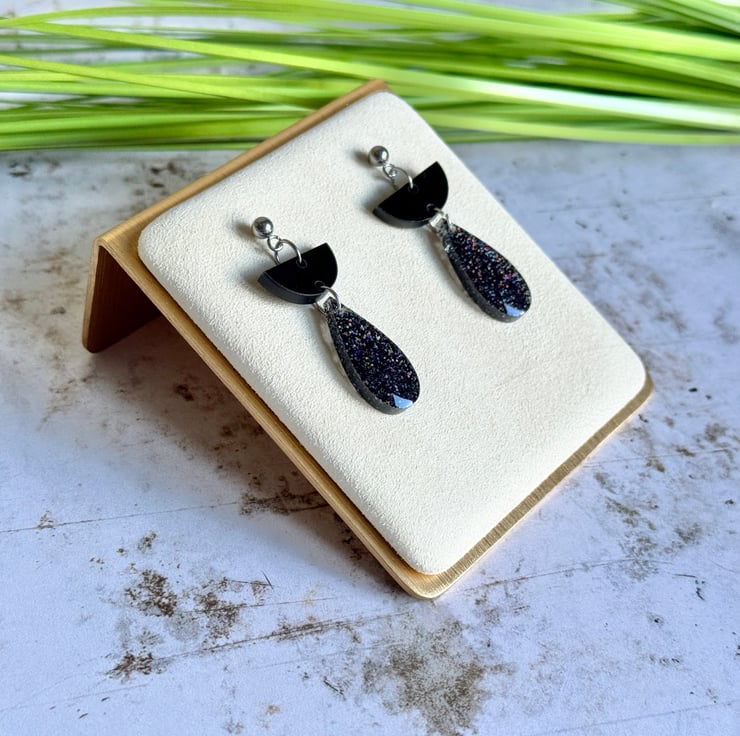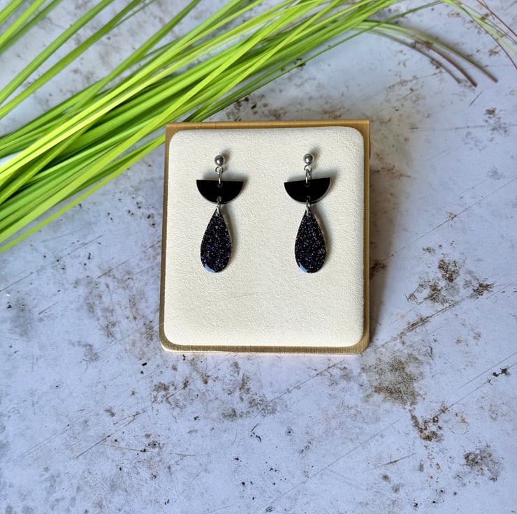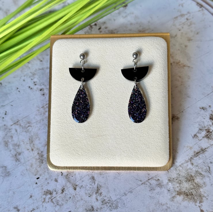 These Black marble semi circles and Black Mixed Glitter teardrops are understated statement earrings.