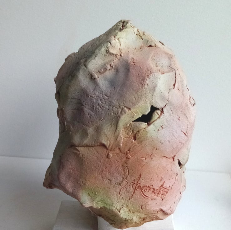 An original macaque sketch sculpture, hand made from terracotta and porcelain clays and uniquely decorated with blended slips and pigments.