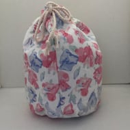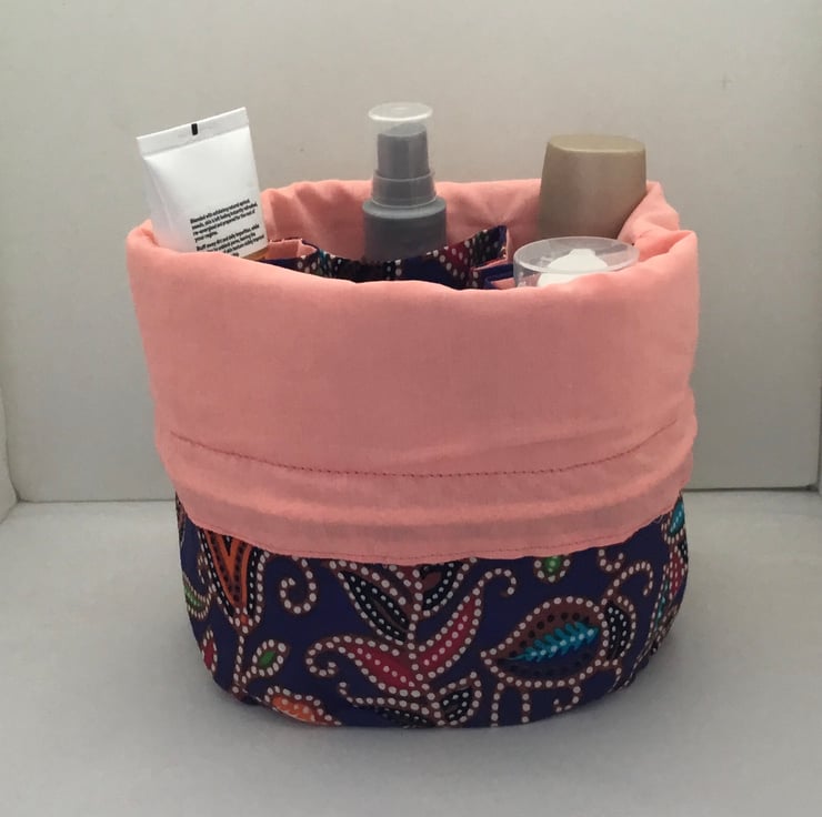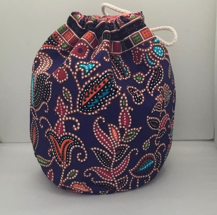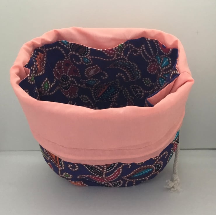 The fabric of this one is an Indian design and has so many beautiful colours in it, I have lined it with a contrasting salmon pink fabric to bring out the best in both fabrics used.