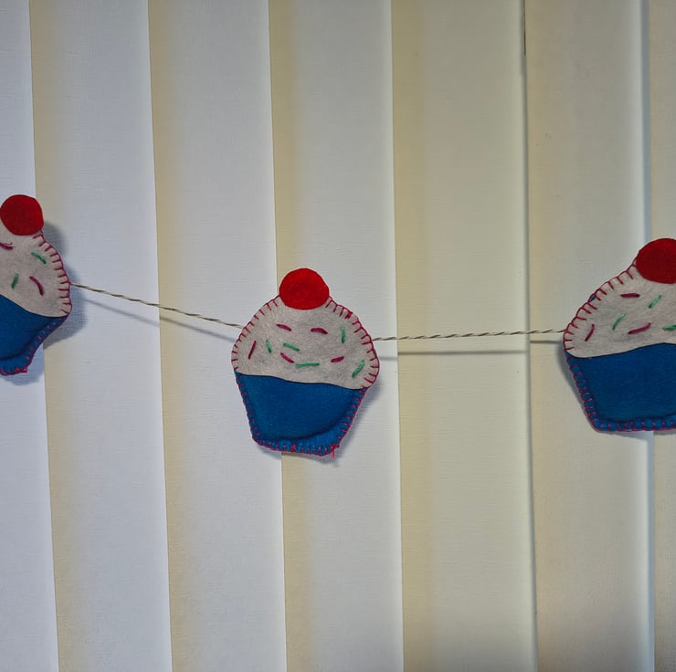 Bunting in a cupcake design, each one hand stitched.