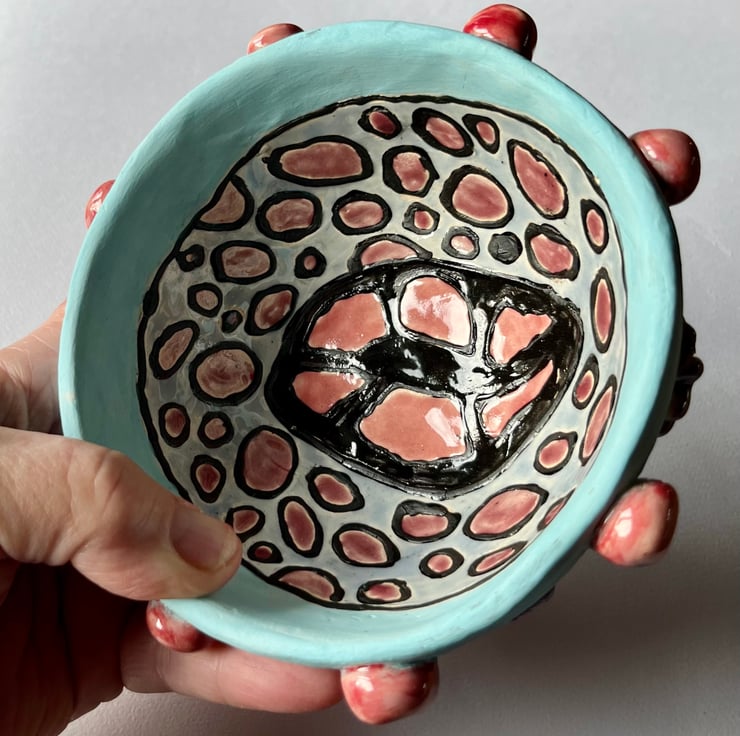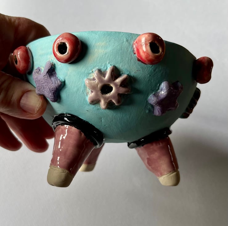 This little bowl has lots of 3d elements including legs!! For decorative use only due to unglazed areas this piece looks so cute on display and will hold your keys perfectly - or as it’s close to Valentine’s maybe your engagement ring????
