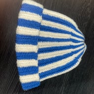 Adorable mix two colours milky white and purple beanie perfectly sized for little ones. Soft, chunky knit and these two colours of combination make it a snug. Great and stylish addition to baby's wardrobe . Easy to wash ( machine washable ). For 6 to 12 months babies.