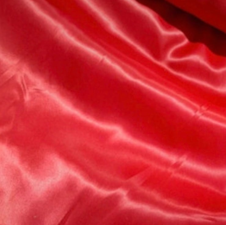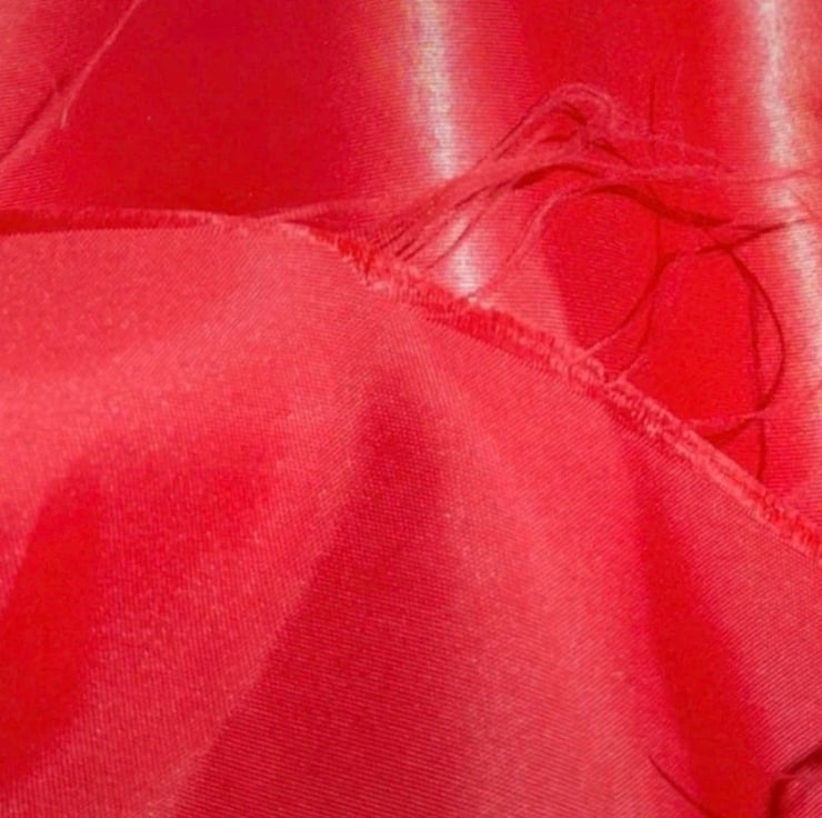 A beautiful quality polyester charmeuse satin in a rich post-box red shade. This fabric has been freshly cut from an unused roll and has never been used.