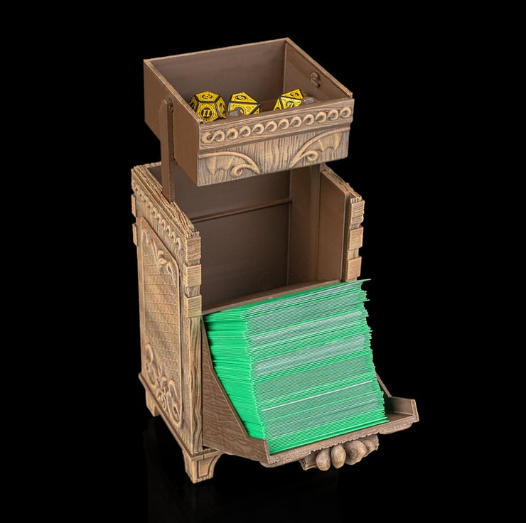 The Vault of Scales is more than just a deck box – it’s a dragon-forged vault designed for serious trading card collectors. Featuring intricate 3D-printed detailing in a wood-like finish, this box combines fantasy flair with practical protection.