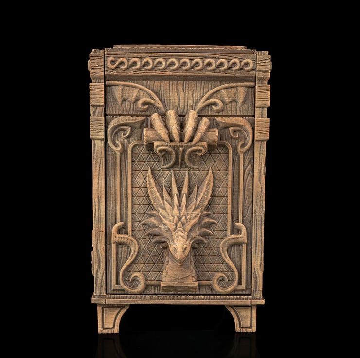 3D Printed Dragon Deck Box: Wood-Look Card Storage for MTG, Pokémon, Yu-Gi-Oh