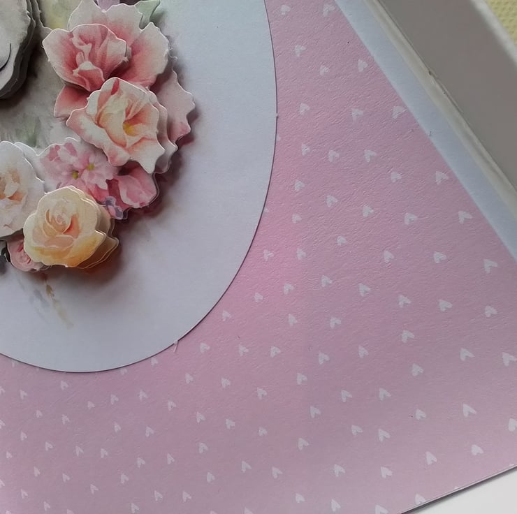 A cute 3D lamb surrounded by flowers. This card would be perfect for Easter or to welcome a new baby.