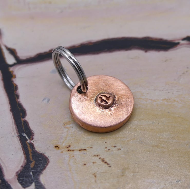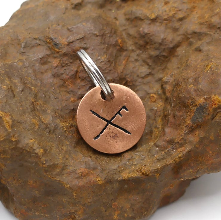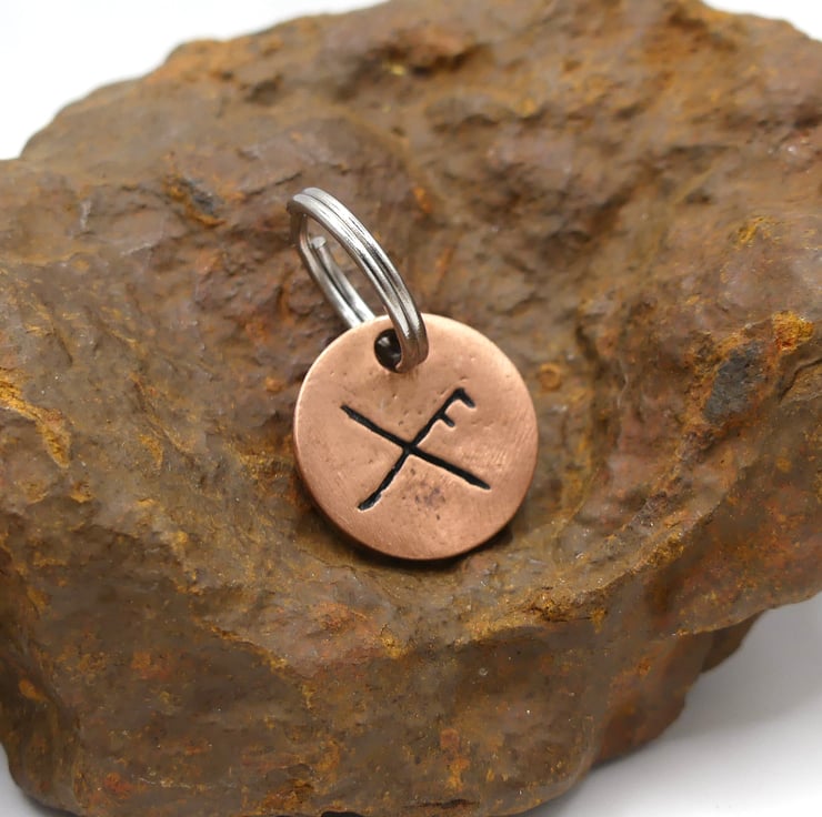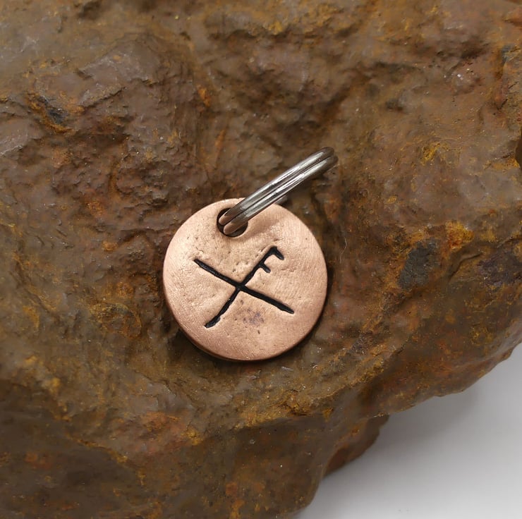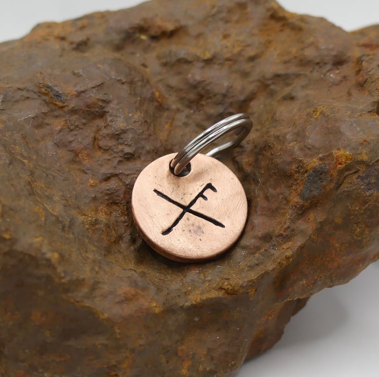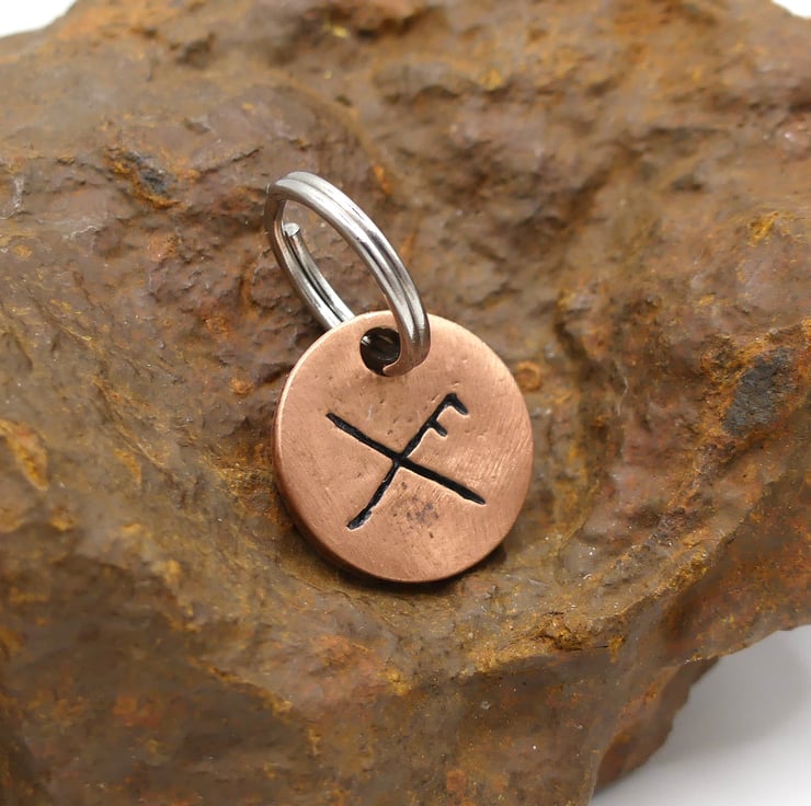 Recycled Round Copper Good Luck Bindrune Keyring Charm, Bag Charm.