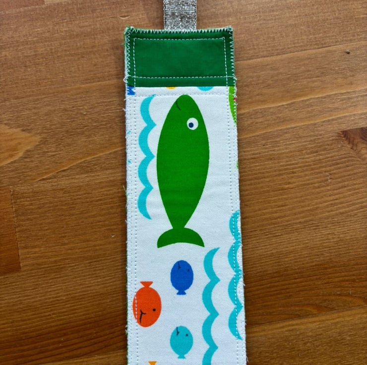 Introducing our delightful Patchwork Sewing Bookmark, a perfect companion for your reading adventures! Crafted with love from a stunning Fish fabric print in white and green, this bookmark is sure to brighten your book. The back features a playful green fabric that adds an extra touch of charm.