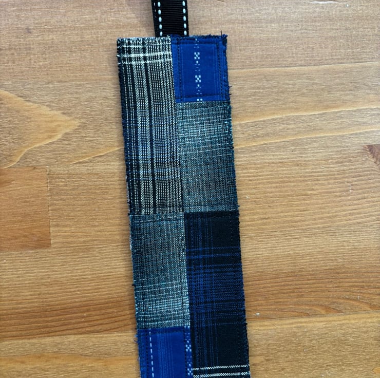 Introducing our delightful Patchwork Sewing Bookmark, a perfect companion for your reading adventures! Crafted with love from a stunning blue fabric, this bookmark is sure to brighten your book. The back features an elegant navy back that adds an extra touch of charm.